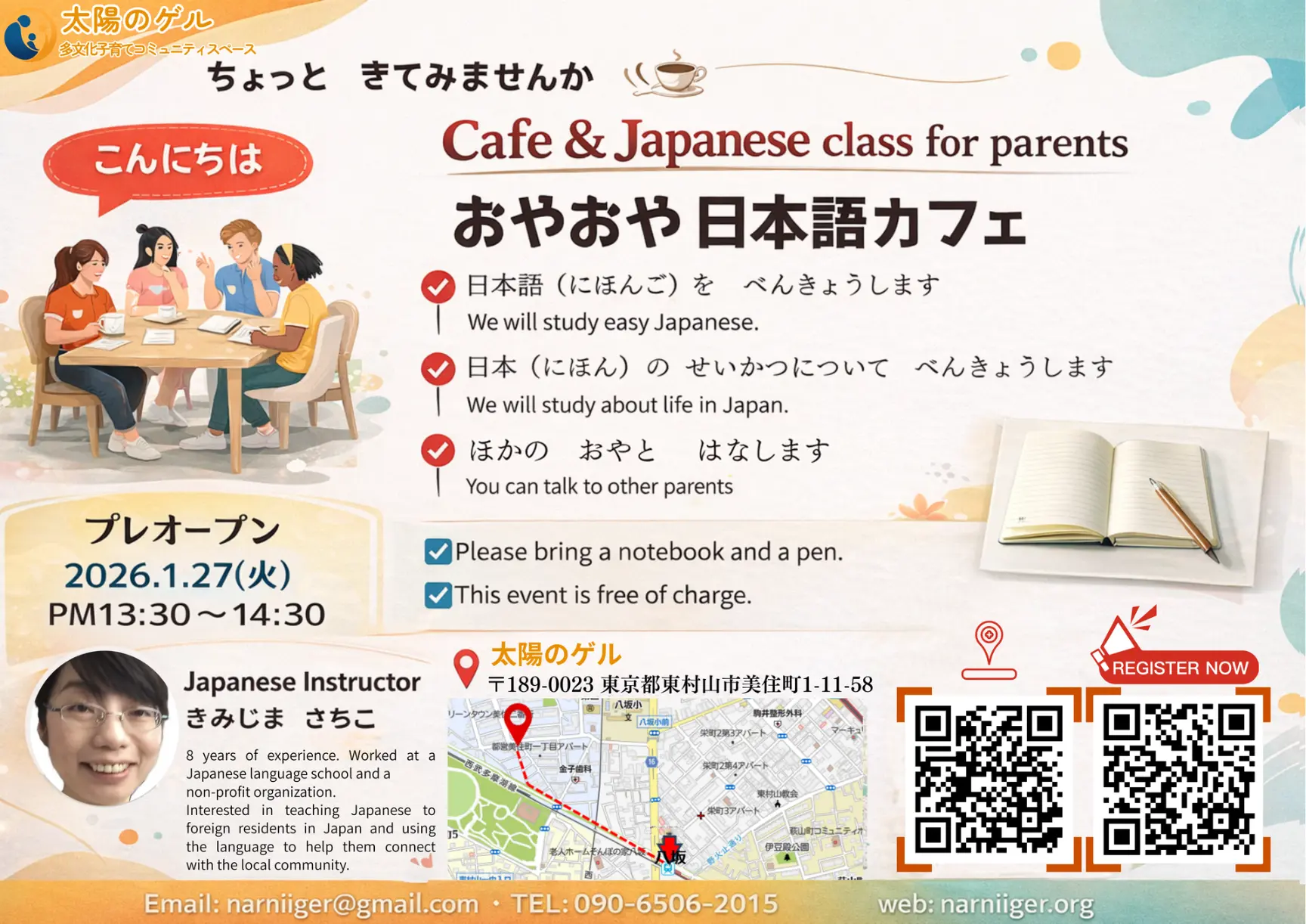 ・日本語、子育て、キャリアに関するアドバイス等様々な学びの機会