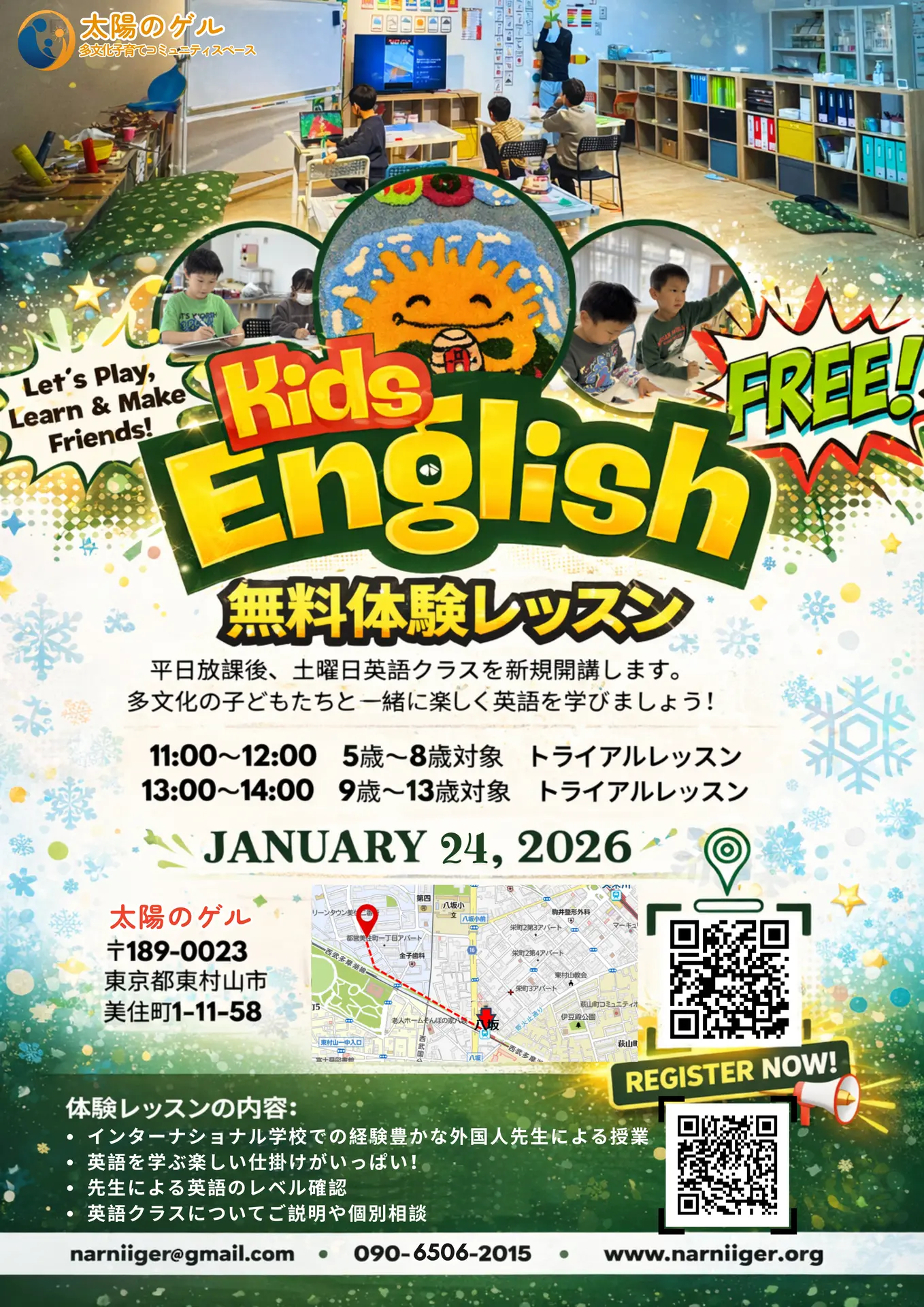 また、地域の子どもと外国ルーツの子どもたちの相互理解、共生に貢献すべく英語や多文化教育プログラムを実施していきます。
